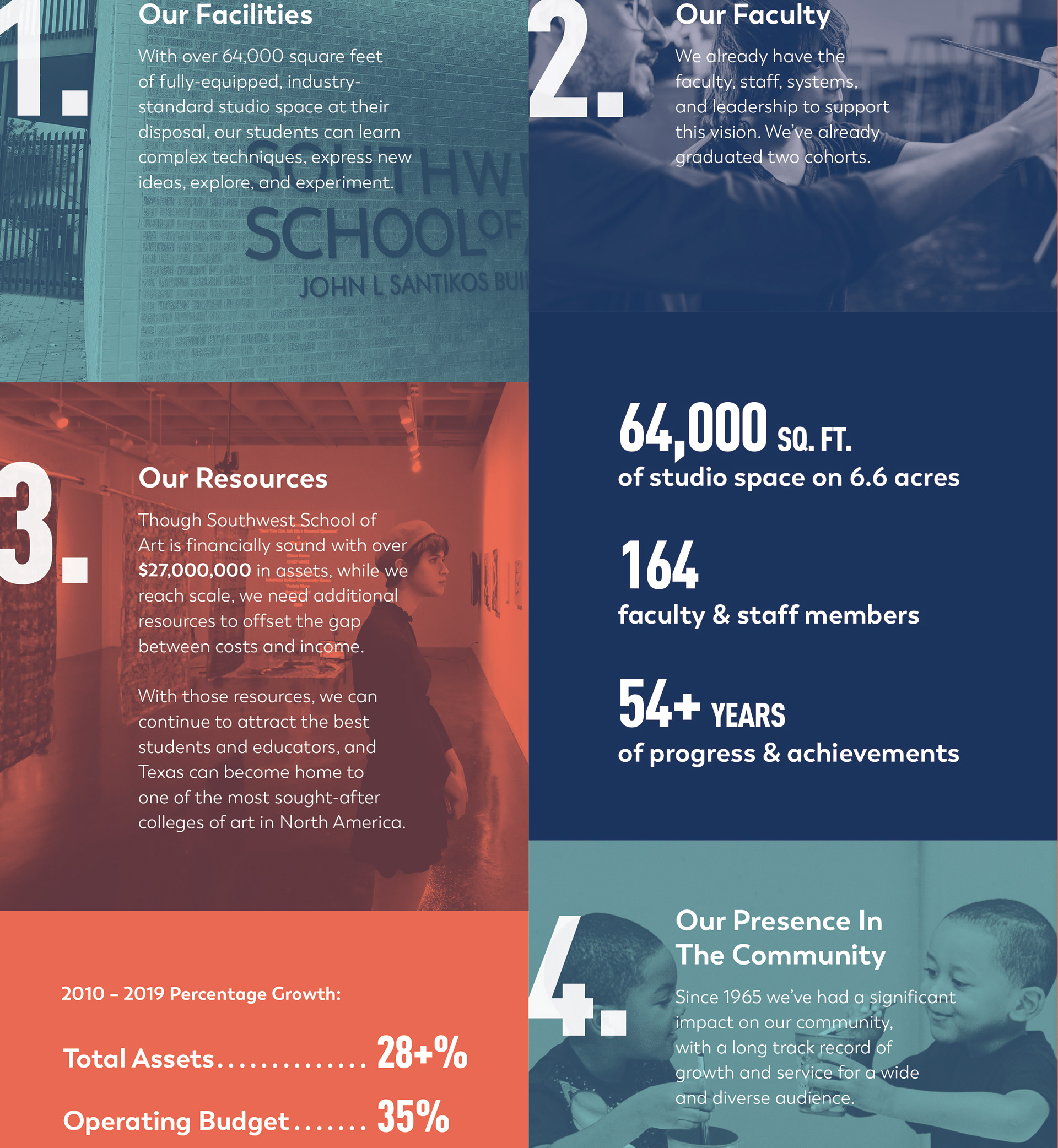 The Southwest School of Art in San Antonio needed a theme and design for their capital fundraising campaign. As the only independent art school in Texas, attaining accreditation is key to continuing the great work they do of cultivating creative talent in the center of our great state. This brochure, I helped create, is crucial in helping them achieve that accreditation. The design was inspired by the Texas spirit of being independent, and captures the edgy & progressive vibe the students, faculty and staff of SSA contribute to the community of San Antonio and beyond.