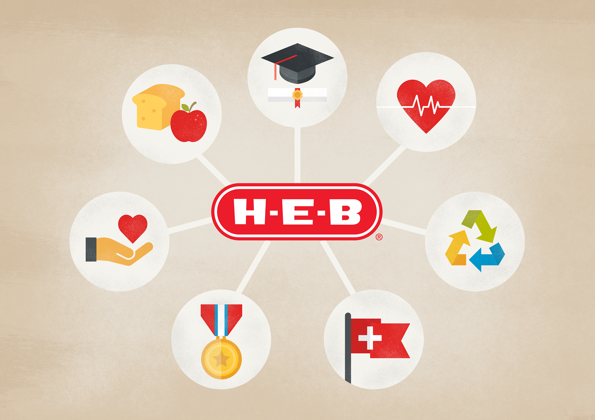 A fun project for HEB for which I created the illustrations for an internal video animation. The video helped showcase all the great things HEB does in the communities they serve.
