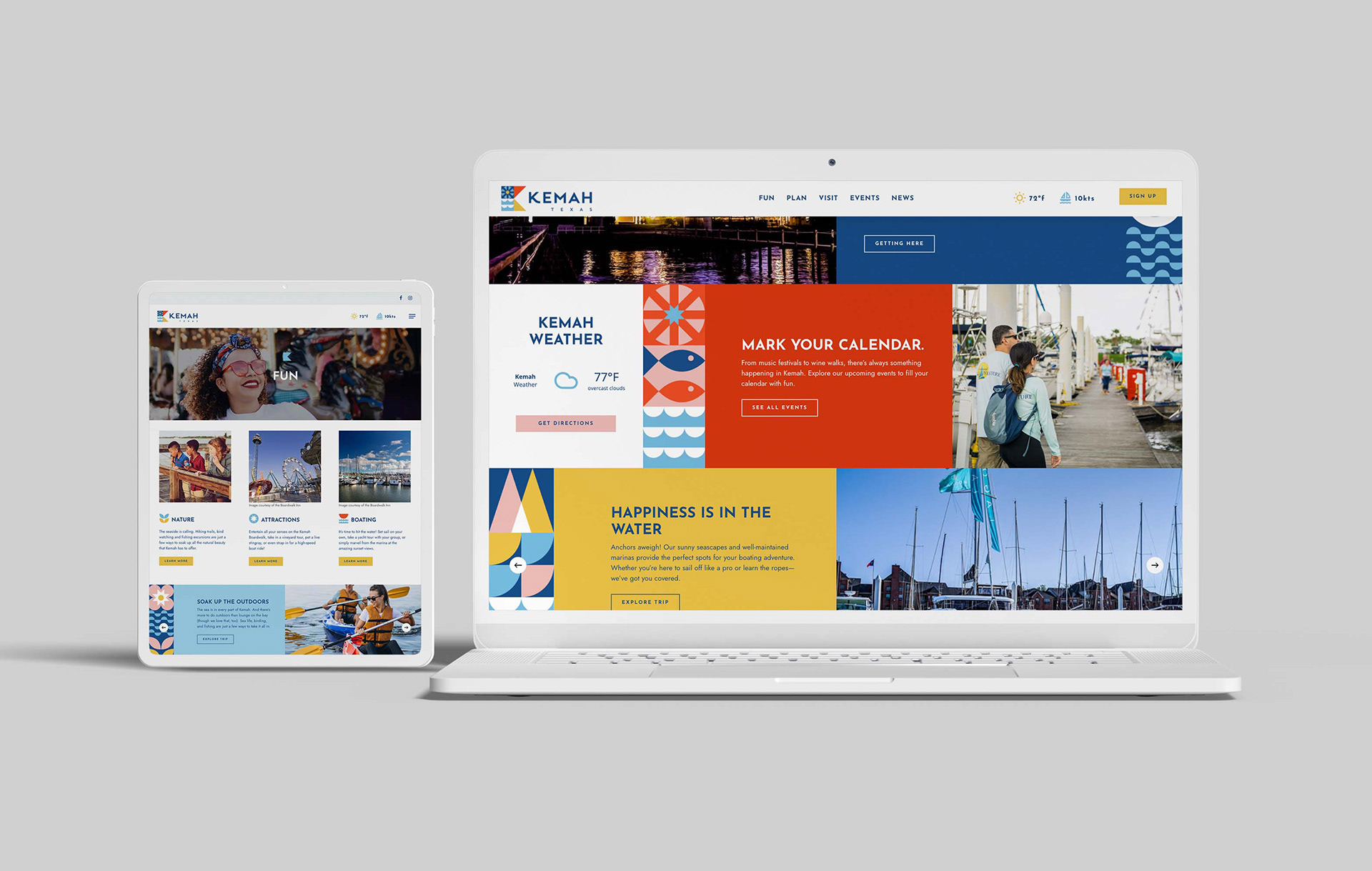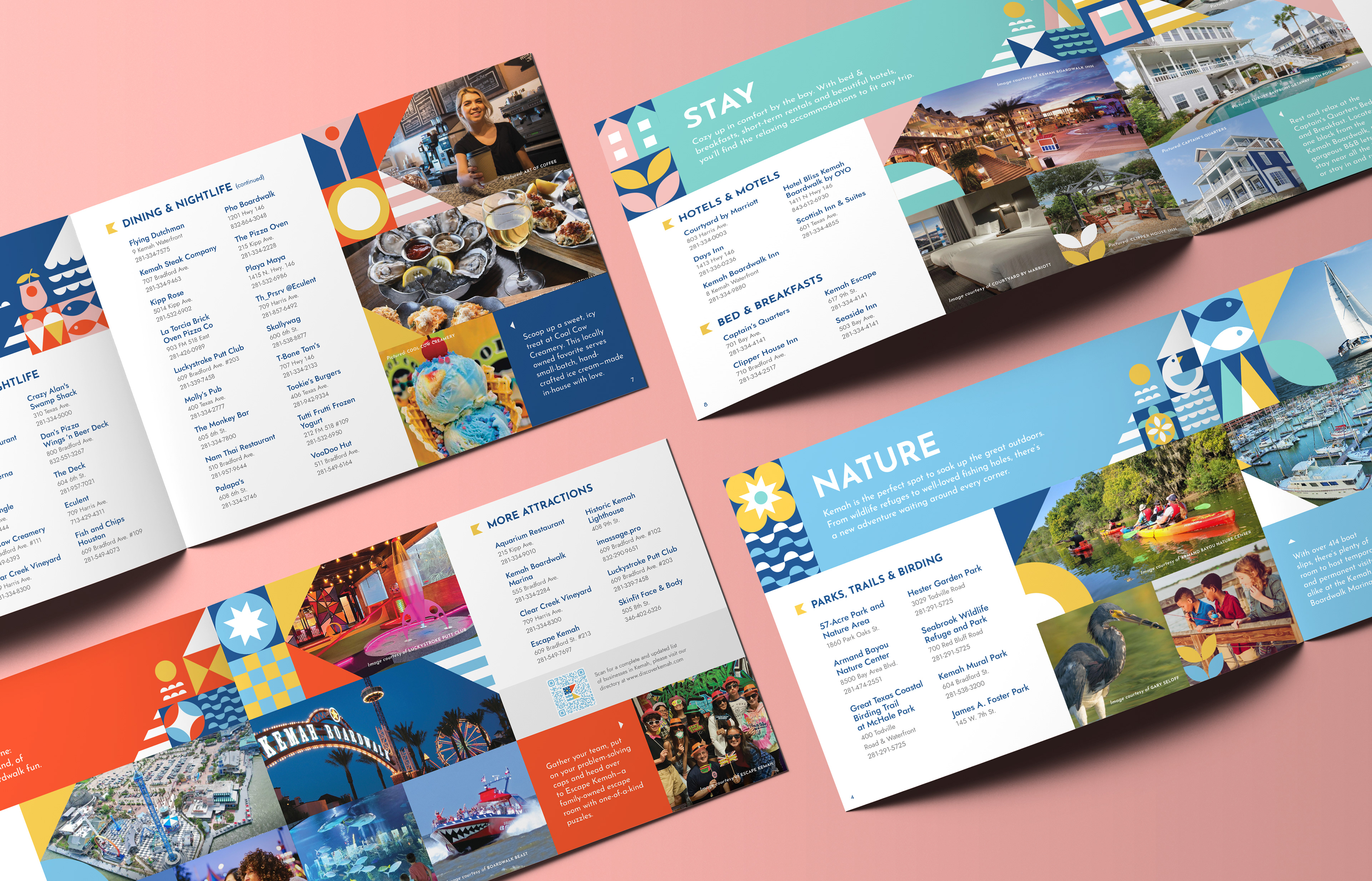 The result is a series of interchangeable logos that appeal to different audiences. There’s one geared toward nature lovers, one for boaters and one for thrill seekers. The logo is as unique as Kemah.